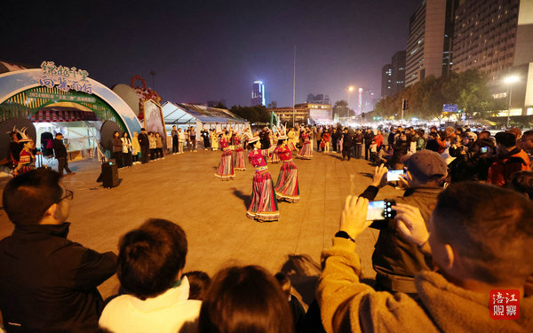 夜幕下的石家莊文化廣場同樣熱鬧非凡。淳樸的歌聲、震撼的鼓點,奏出民族文化體驗、傳播、傳承的優(yōu)美曲風。火焰攀升,熱情民族歌舞、民族鼓樂、集體鍋莊舞等表演接連進行,讓觀眾沉醉于濃厚的民族風情之中。大家手拉手圍著篝火邊唱邊跳,用歌聲傾訴熾熱情懷,以舞蹈展現(xiàn)精神寄托,歡笑之間,兩地市民之間的距離越來越近,情感越來越深!