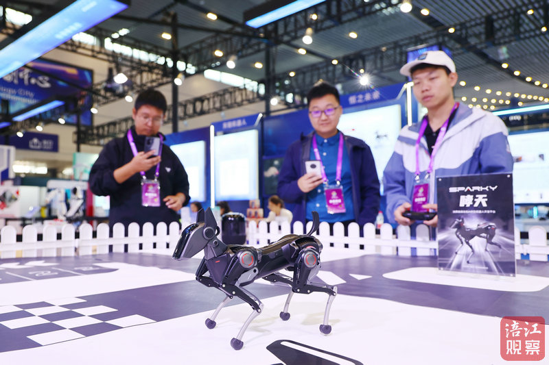 “這臺(tái)機(jī)器狗可以進(jìn)行日常巡邏巡查,解決安保警力需求量大、現(xiàn)場(chǎng)環(huán)境復(fù)雜等問題。科博會(huì)期間,我們公司的幾款機(jī)器狗都會(huì)跟隨警方進(jìn)行巡館。”中國(guó)兵器裝備集團(tuán)自動(dòng)化研究所有限公司相關(guān)負(fù)責(zé)人介紹,公司還帶來了智能人形機(jī)器人大圣D11、仿生撲翼飛行器等產(chǎn)品,“歡迎大家前來參觀、互動(dòng)”。