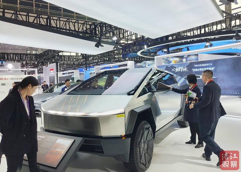 特斯拉公司展臺(tái)工作人員王銳向記者介紹,“特斯拉(賽博越野旅行車)采用不銹鋼的外殼,車身非常堅(jiān)固,不僅可以抵御“子彈”,同時(shí)也能夠應(yīng)對(duì)更多更惡劣的環(huán)境和路況,在我們的想象中,未來這臺(tái)車還可以在火星上面行駛。”