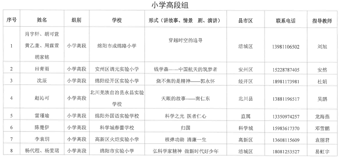 綿陽市中小學(xué)、中職學(xué)生