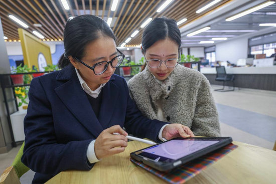 12月4日,湖州市住房公積金管理中心長(zhǎng)興縣分中心工作人員(左)在長(zhǎng)興縣雉城街道所前社區(qū)給居民辦理公積金提取業(yè)務(wù)。