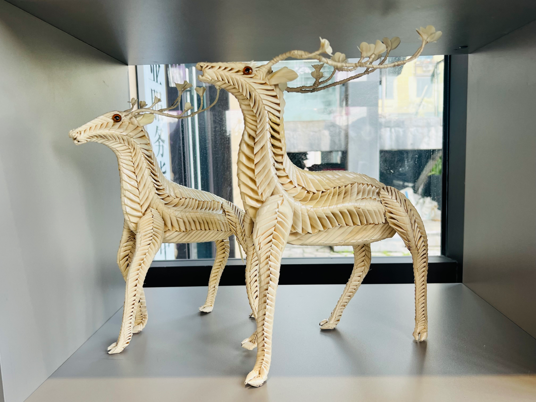 一把剪刀、一把鉗子、幾根鐵絲、幾片棕櫚葉,經(jīng)過一雙巧手便能擺弄出鳳凰、丹頂鶴、螞蚱等各種各樣、生靈活現(xiàn)的形象。李兵就是這樣十年如一日堅守匠心,追逐夢想,讓棕編這項傳統(tǒng)技藝迎來新生。