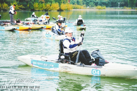 當(dāng)天上午10時許,隨著裁判員一聲令下,選手們帶齊裝備乘坐各自的卡亞克賽艇向湖面挺進。只見他們到達理想目的地后,就自如地揮桿拋線,一氣呵成,再不停地甩竿、收線、抖動竿子,嘗試不同的拉線方式,吸引著目標魚發(fā)動攻擊。各位名釣大咖在如詩如畫的白水湖面上大秀絕活、“釣壇論劍”,頗有點“一蓑一笠一扁舟,一丈絲綸一寸鉤”的意境。