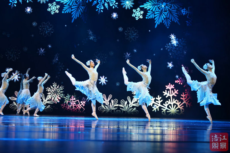 19時(shí)30分,如夢似幻的雪花飄然而下,伴隨著悠揚(yáng)的音樂,原創(chuàng)芭蕾音詩舞《涪鷗》正式拉開演出序幕。