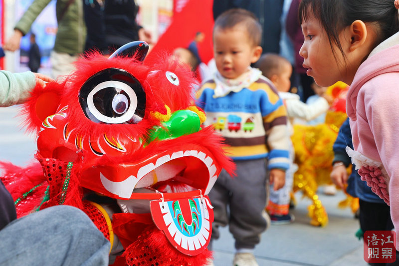 臺(tái)上,兩只金峰雄獅跟著鼓聲節(jié)奏,不時(shí)做著搖頭、眨眼等動(dòng)作,舞出非遺新風(fēng)采。