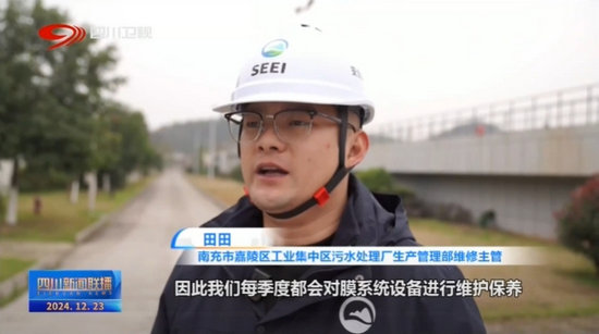 南充市嘉陵區(qū)工業(yè)集中區(qū)污水處理廠生產(chǎn)管理部維修主管 田田:因?yàn)槟は到y(tǒng)設(shè)備是污水處理工藝的核心設(shè)備,因此我們每季度都會(huì)對(duì)膜系統(tǒng)設(shè)備進(jìn)行維護(hù)保養(yǎng),從而確保污水處理廠核心MBR膜的正常運(yùn)行,保證經(jīng)過(guò)處理的污水完全達(dá)到《四川省岷江、沱江流域水污染物排放標(biāo)準(zhǔn)》中城鎮(zhèn)污水處理廠排放標(biāo)準(zhǔn)。
