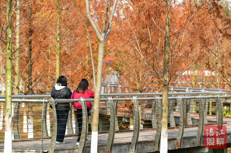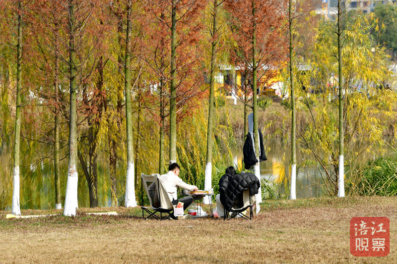 天藍水清、水鳥翱翔,湖中植被茂密、層林盡染,市民和游客或散步、或曬太陽、或圍爐煮茶……在溫暖悠閑的時光里,感受歲月的美好與溫柔。