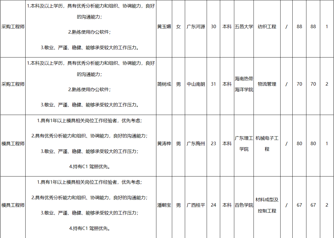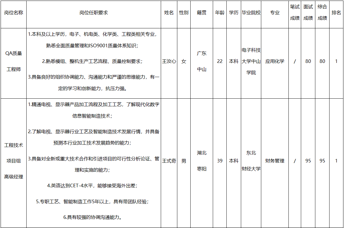 根據(jù)廣東長(zhǎng)虹電子有限公司發(fā)布的招聘公告及招聘相關(guān)規(guī)定,經(jīng)面試等程序,現(xiàn)將面試成績(jī)予以公示。