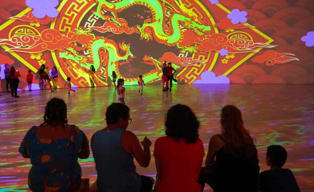 2月3日,在巴西累西腓,人們在中國春節(jié)慶?;顒?dòng)上觀賞沉浸式體驗(yàn)展。新華社記者王天聰攝