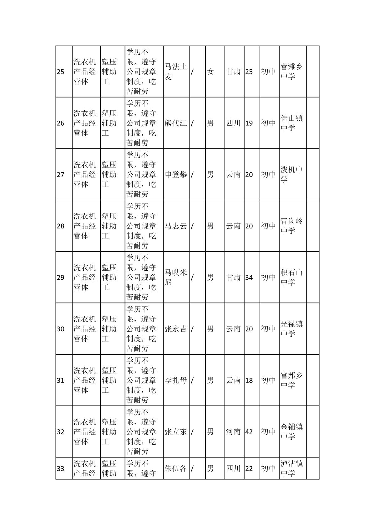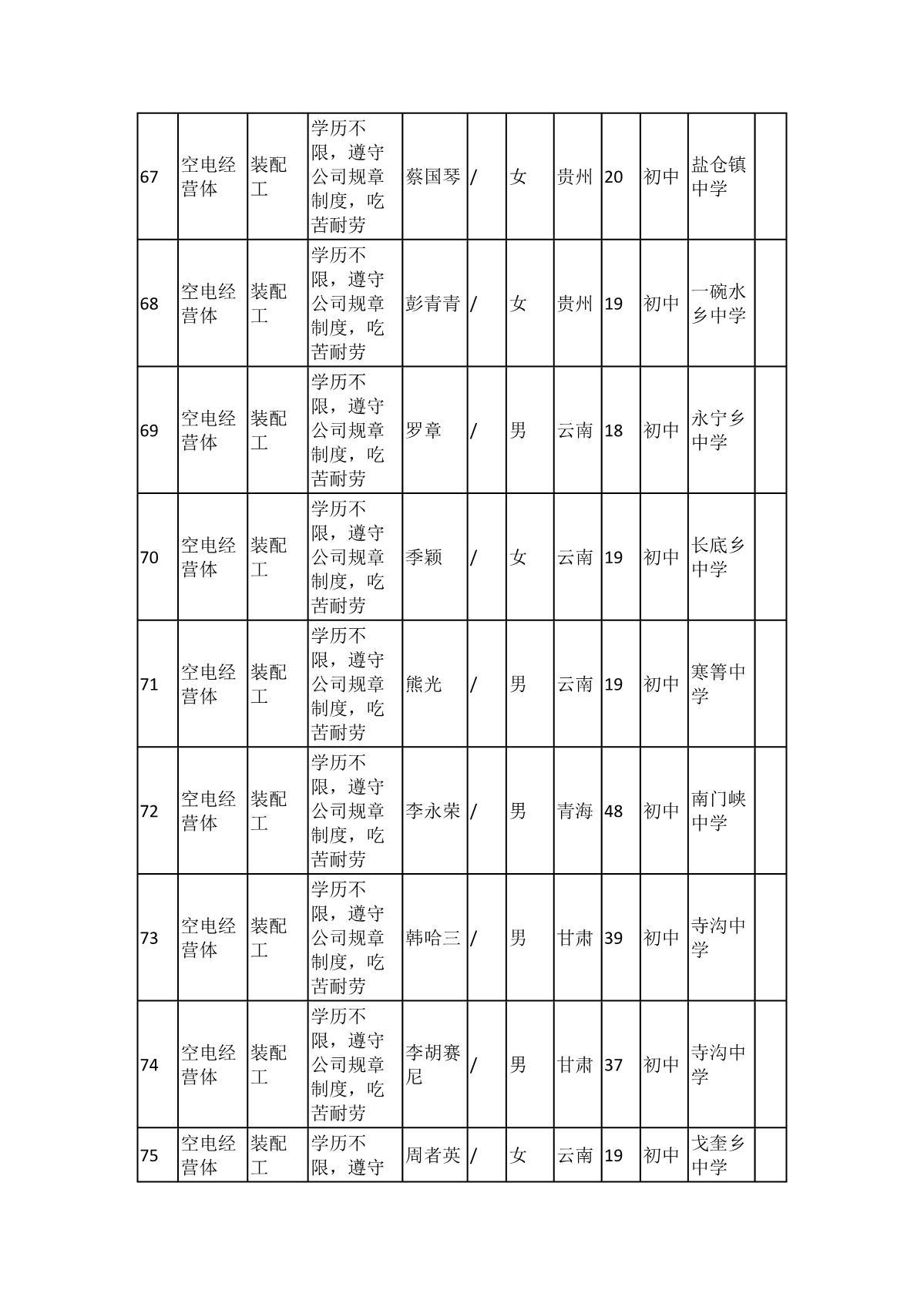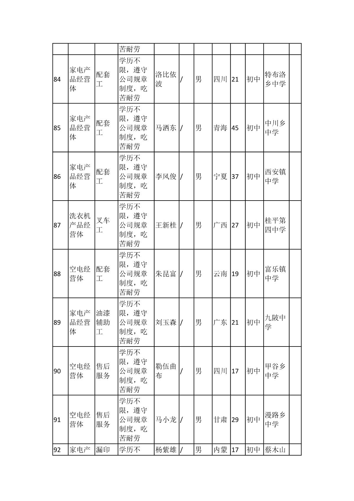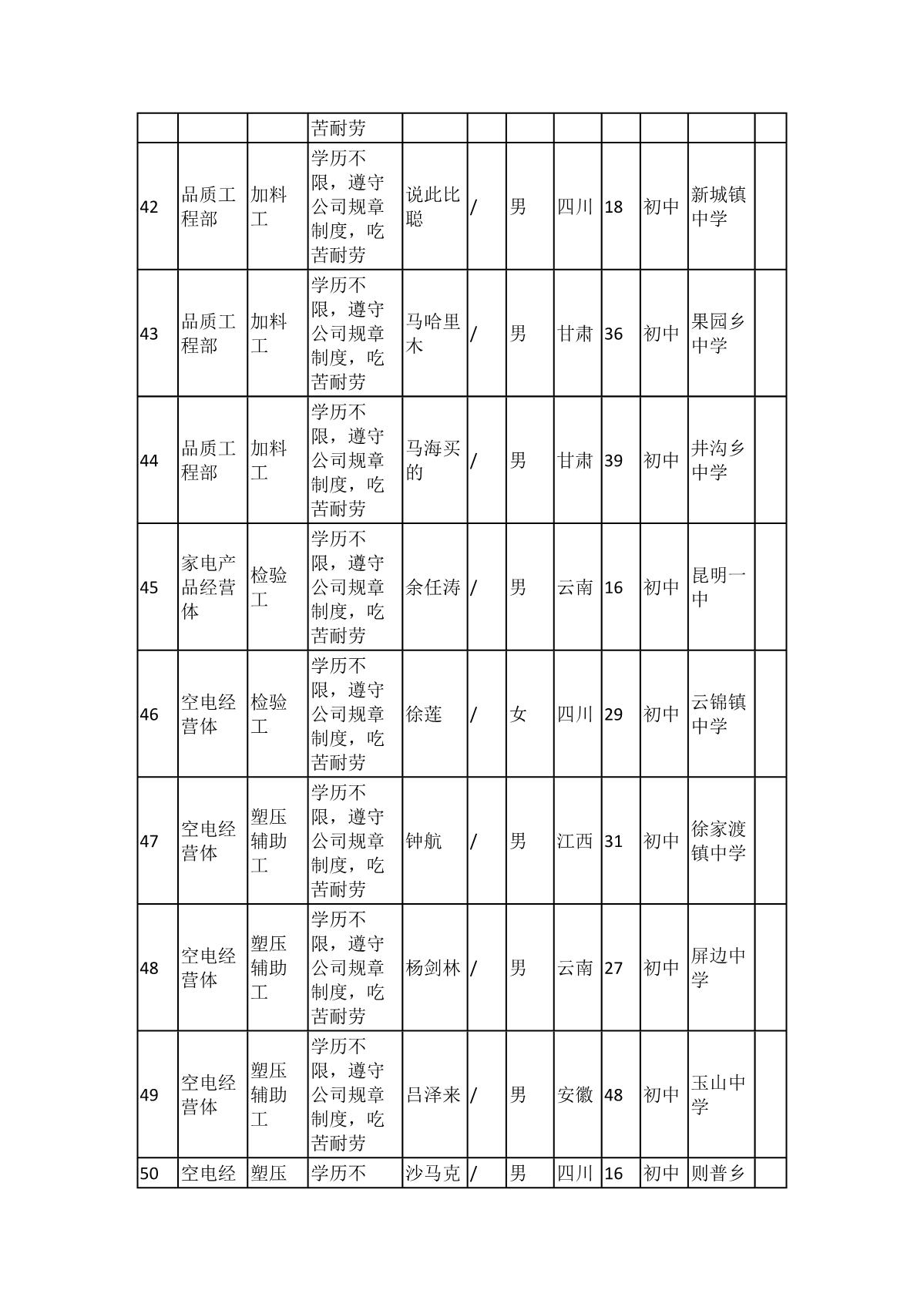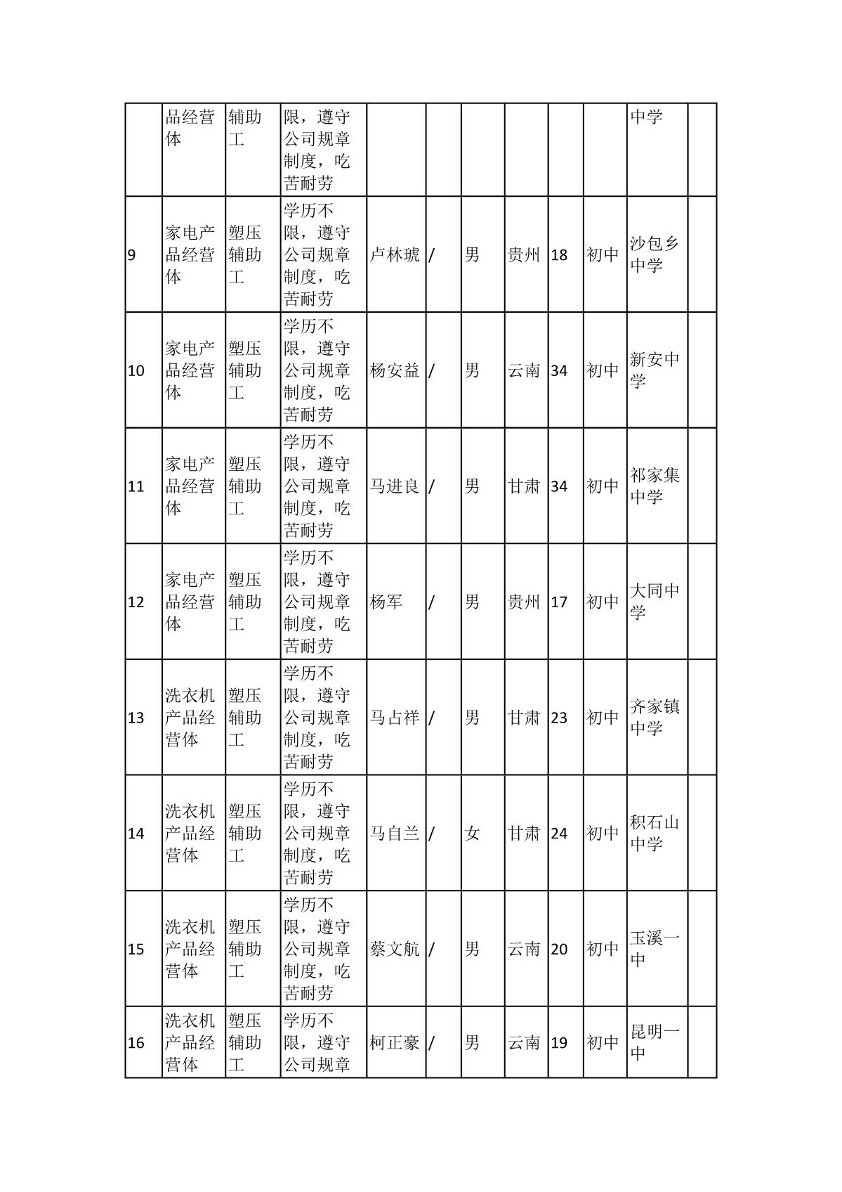 根據(jù)長(zhǎng)虹模塑公司發(fā)布的招聘公告及招聘相關(guān)規(guī)定,經(jīng)筆試、面試、考察、體檢等程序,擬錄用103名同志到長(zhǎng)虹模塑公司工作,現(xiàn)予以公示,具體情況如下: