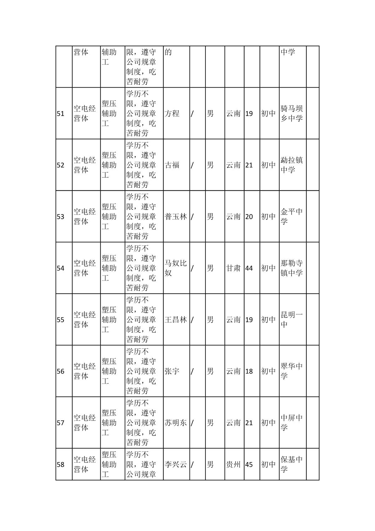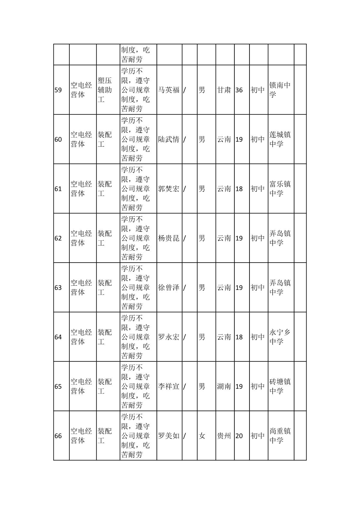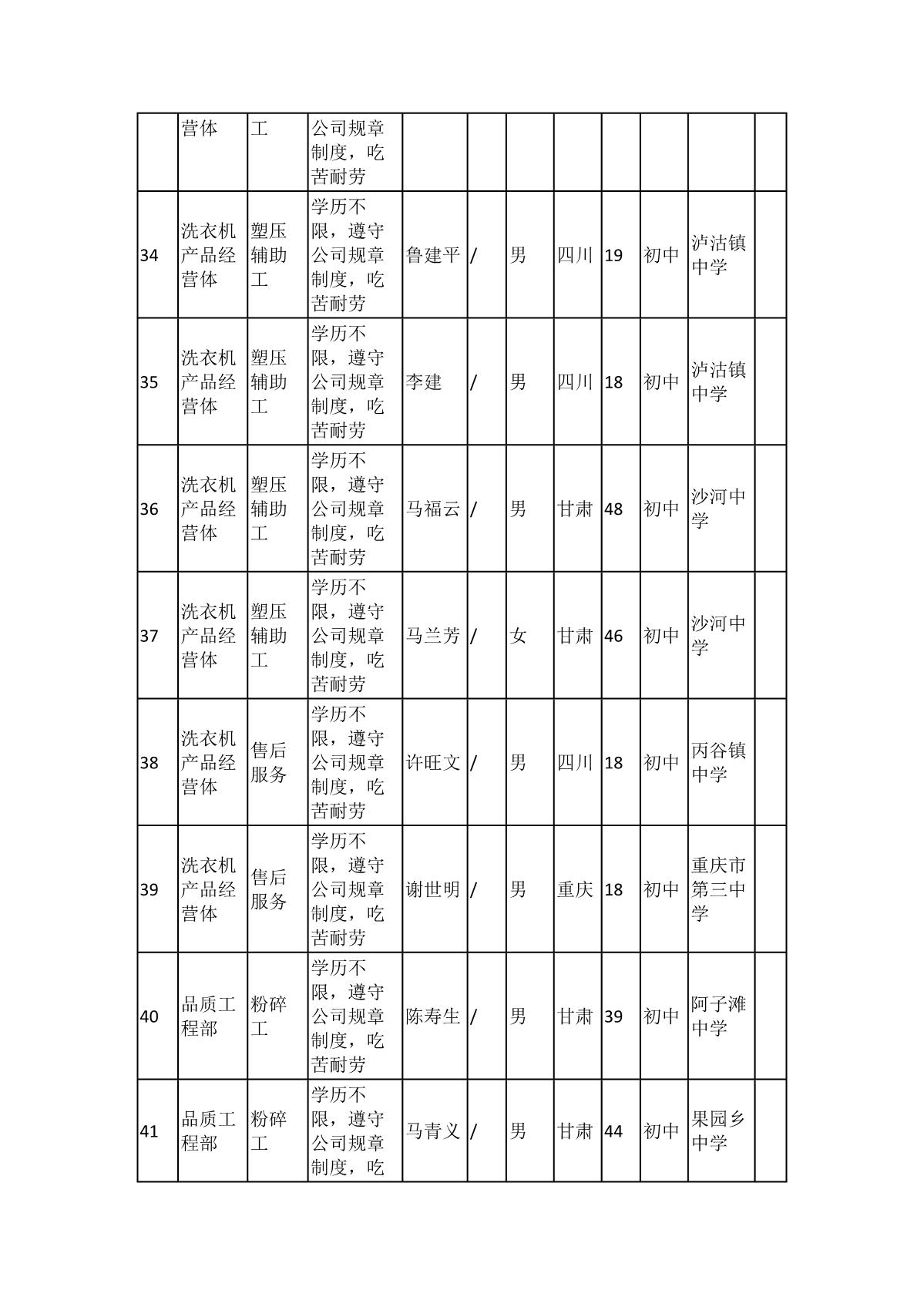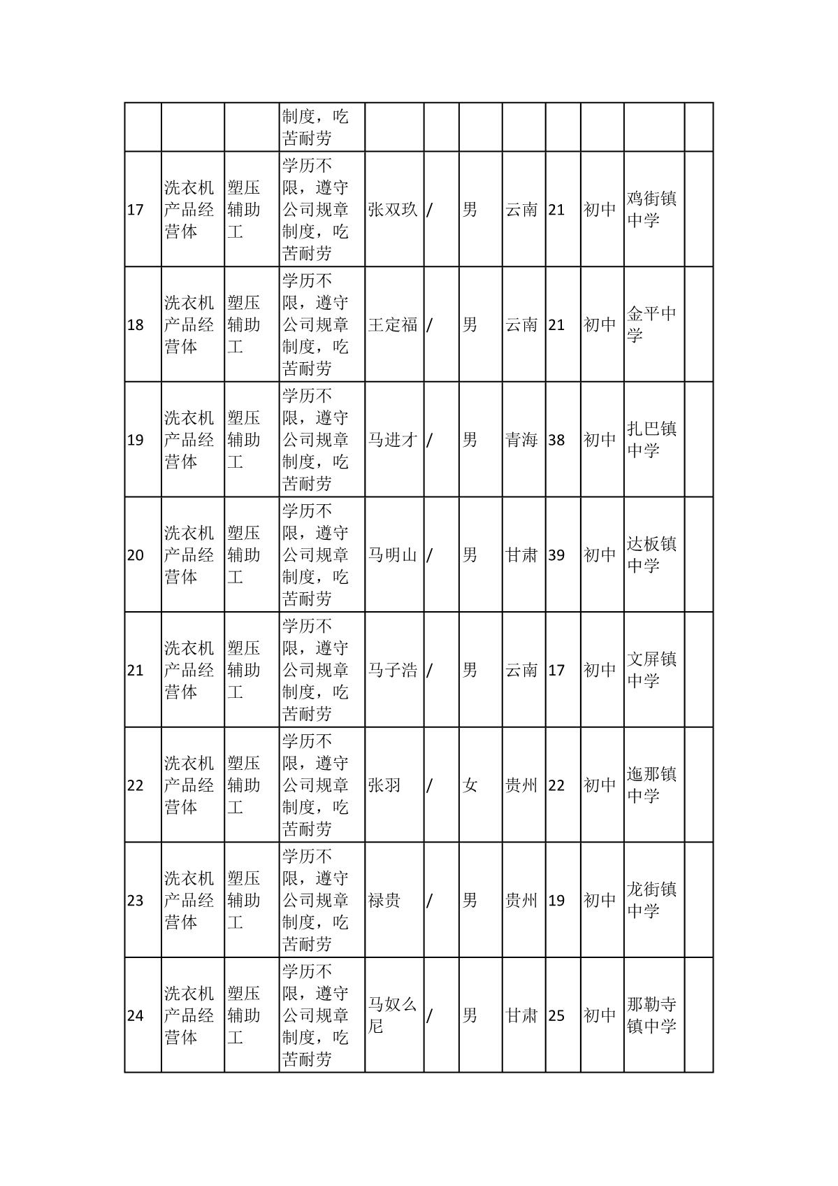 根據(jù)長(zhǎng)虹模塑公司發(fā)布的招聘公告及招聘相關(guān)規(guī)定,經(jīng)筆試、面試、考察、體檢等程序,擬錄用103名同志到長(zhǎng)虹模塑公司工作,現(xiàn)予以公示,具體情況如下: