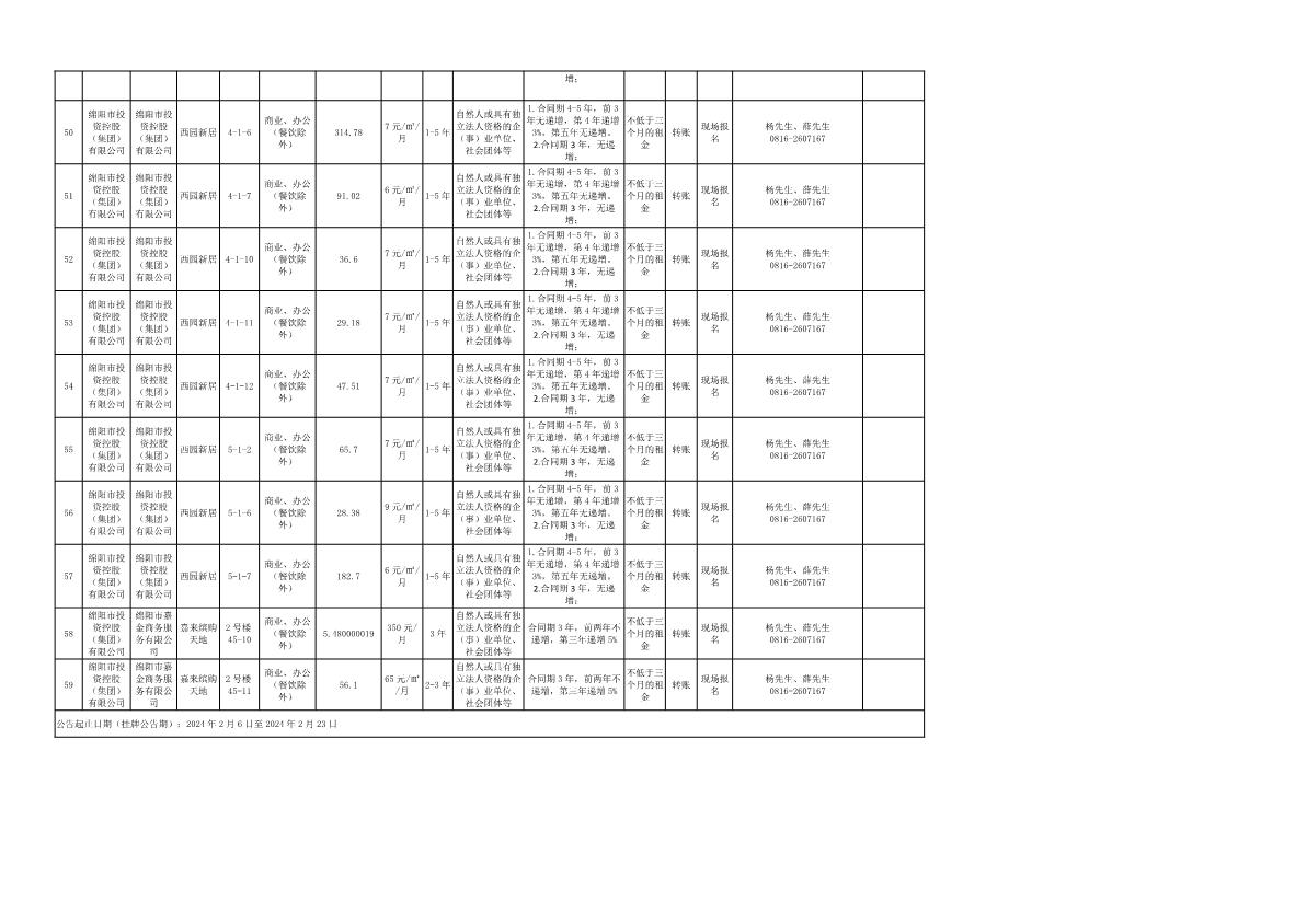 綿陽市綿投商業(yè)運(yùn)營管理有限責(zé)任公司資產(chǎn)出租公告
