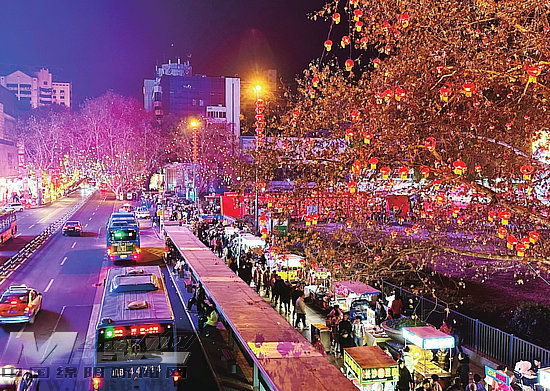 節(jié)前,城區(qū)燈籠便陸續(xù)掛滿枝頭。在臨園干道人民公園一側(cè),樹梢上還懸掛著詩句彩燈,為喜慶年味增添了幾分詩意,吸引了不少游人打卡。