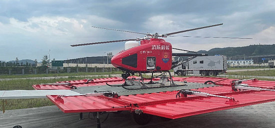 據(jù)悉,“星曜一號”大荷載長航時無人直升機應(yīng)急救援裝備依托北京清航紫荊裝備科技有限公司、廈門信達國貿(mào)汽車集團股份有限公司、廈門信達星曜有限公司、三明市大田縣清航裝備基地聯(lián)合開展研發(fā)、總裝、聯(lián)調(diào)與測試。由JZ-550大荷載長航時交叉雙旋翼無人直升機、高性能四驅(qū)越野測控車、運輸起降平臺三部分組成。JZ-550交叉雙旋翼無人直升機起飛重量>550kg、有效載重>230kg、抗風(fēng)等級>8級、升限7500m、續(xù)航時間>5h。交叉雙旋翼技術(shù)克服了直升機在不穩(wěn)定氣流環(huán)境下導(dǎo)致墜機的“死亡渦環(huán)”產(chǎn)生,在不穩(wěn)定大區(qū)域氣流中可創(chuàng)造穩(wěn)定的小區(qū)域飛行流場環(huán)境,在火場上空、峽谷、樓群建筑物間均可穩(wěn)定飛行,并具備高溫、高寒、高原、濕熱、鹽霧、中雨、中雪等環(huán)境下穩(wěn)定飛行能力。測控車采用高性能四驅(qū)越野底盤,可在崎嶇復(fù)雜路面及地形環(huán)境、惡劣氣候下穩(wěn)定行駛。運輸起降平臺由測控車拖掛前行,具有5度坡面自動找平、一鍵展開閉合功能,能夠為無人直升機提供可靠便捷起降平臺,免去了直升機搬運,并擺脫了對起降場地的限制。“星曜一號”應(yīng)急救援裝備用于解決森林草原、大型石化、超高層建筑、船舶等火災(zāi)撲救及地震、山地、洪澇、冰雪等復(fù)雜惡劣環(huán)境下裝備投送、人員救援等。