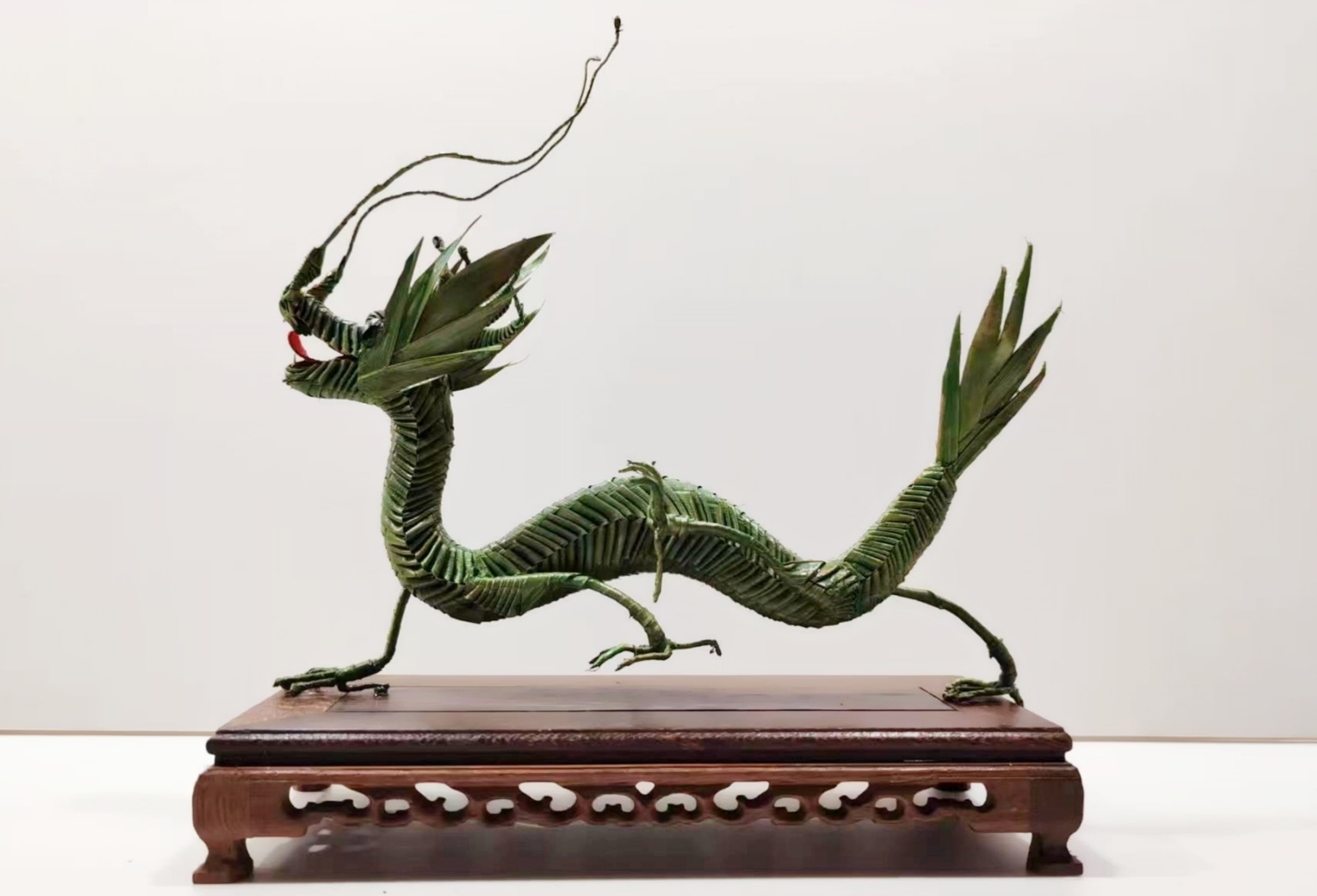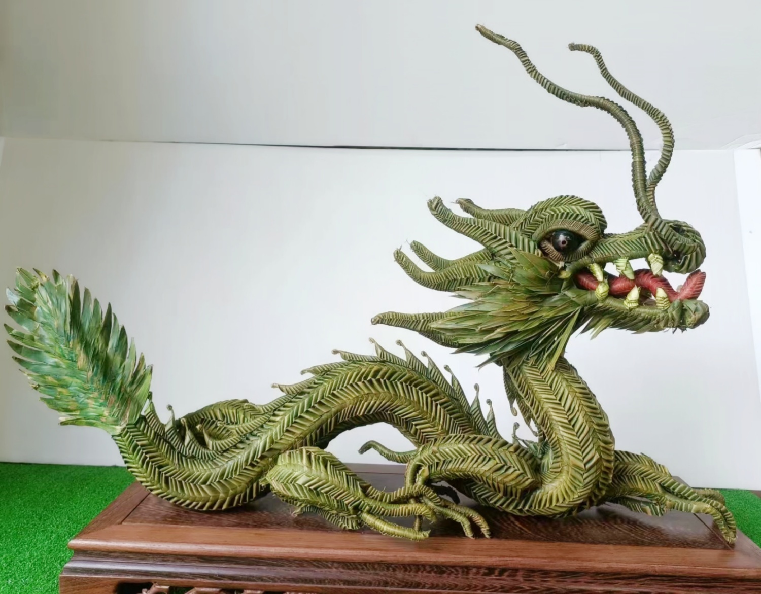 黃強從2004年開始學習羌族草編技藝,在繼承傳統(tǒng)技法的基礎上進行工藝創(chuàng)新,結合人們的生活需求,研發(fā)草編草鞋以及生活飾品、擺件等,草編龍就是其中之一。近年來,他與團隊研發(fā)出不同規(guī)格、不同形態(tài)的草編中國龍,并多次帶出國門展示、展銷,受到世界各地友人的喜愛。