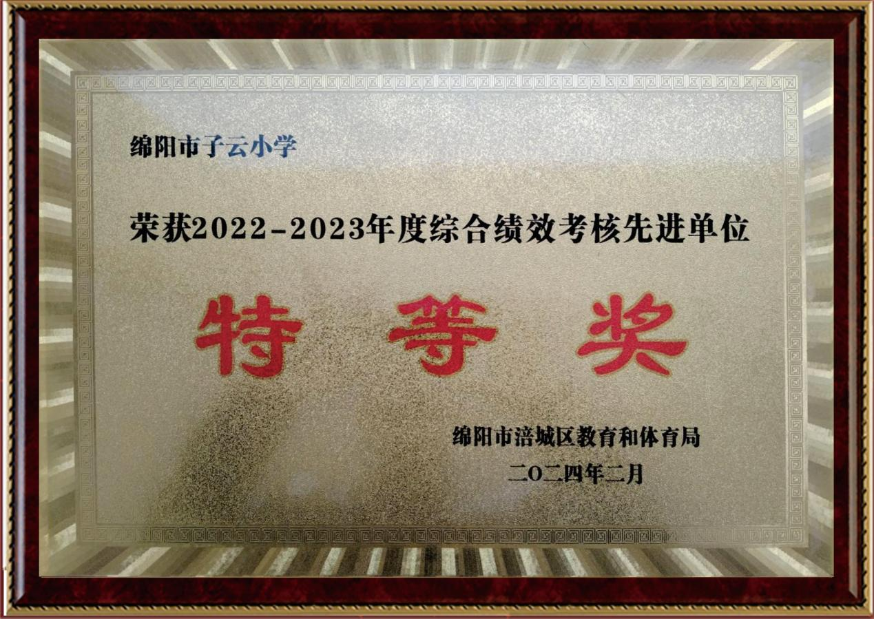 2024年2月19日,在剛剛結(jié)束的涪城區(qū)推進(jìn)義務(wù)教育教學(xué)改革實(shí)驗(yàn)區(qū)建設(shè)工作會(huì)暨2022-2023學(xué)年度表彰會(huì)上,綿陽市子云小學(xué)再次囊括小學(xué)考評(píng)所有項(xiàng)目最高獎(jiǎng)——特等獎(jiǎng)。