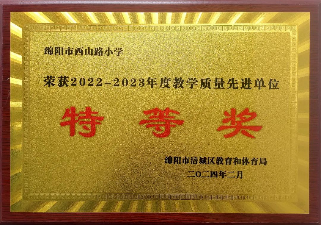 綿陽市西山路小學(xué)榮獲“綜合績效考核特等獎”“教學(xué)質(zhì)量特等獎”“畢業(yè)生就近入學(xué)特等獎”殊榮。