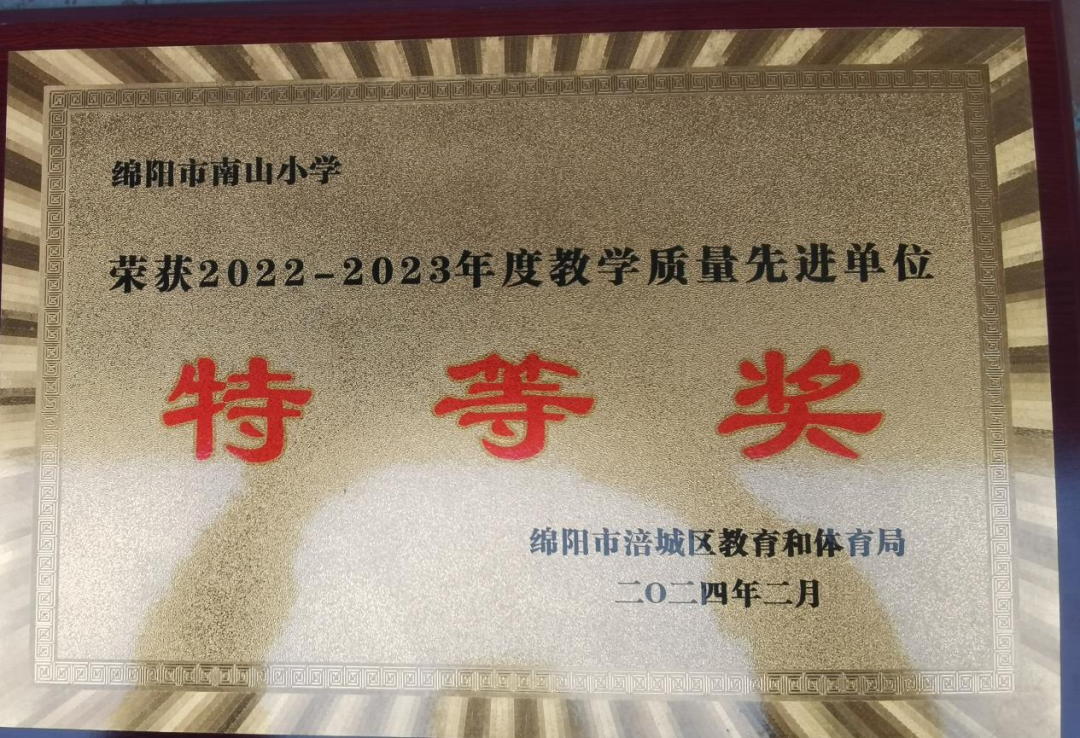 奮楫篤行,履踐致遠(yuǎn)。春華秋實(shí),碩果芬芳。2024年2月19日,涪城區(qū)召開教育教學(xué)改革實(shí)驗(yàn)區(qū)建設(shè)工作會(huì)暨2022—2023學(xué)年度學(xué)校教育質(zhì)量評(píng)價(jià)表彰大會(huì)上,綿陽市實(shí)驗(yàn)小學(xué)南山校區(qū)繼2021—2022學(xué)年度榮獲涪城區(qū)學(xué)???jī)效考核、教學(xué)質(zhì)量特等獎(jiǎng)后,繼續(xù)榮獲2022—2023學(xué)年度:教學(xué)質(zhì)量先進(jìn)單位特等獎(jiǎng)、綜合績(jī)效考核先進(jìn)單位一等獎(jiǎng)、畢業(yè)生就近入學(xué)先進(jìn)單位一等獎(jiǎng)。