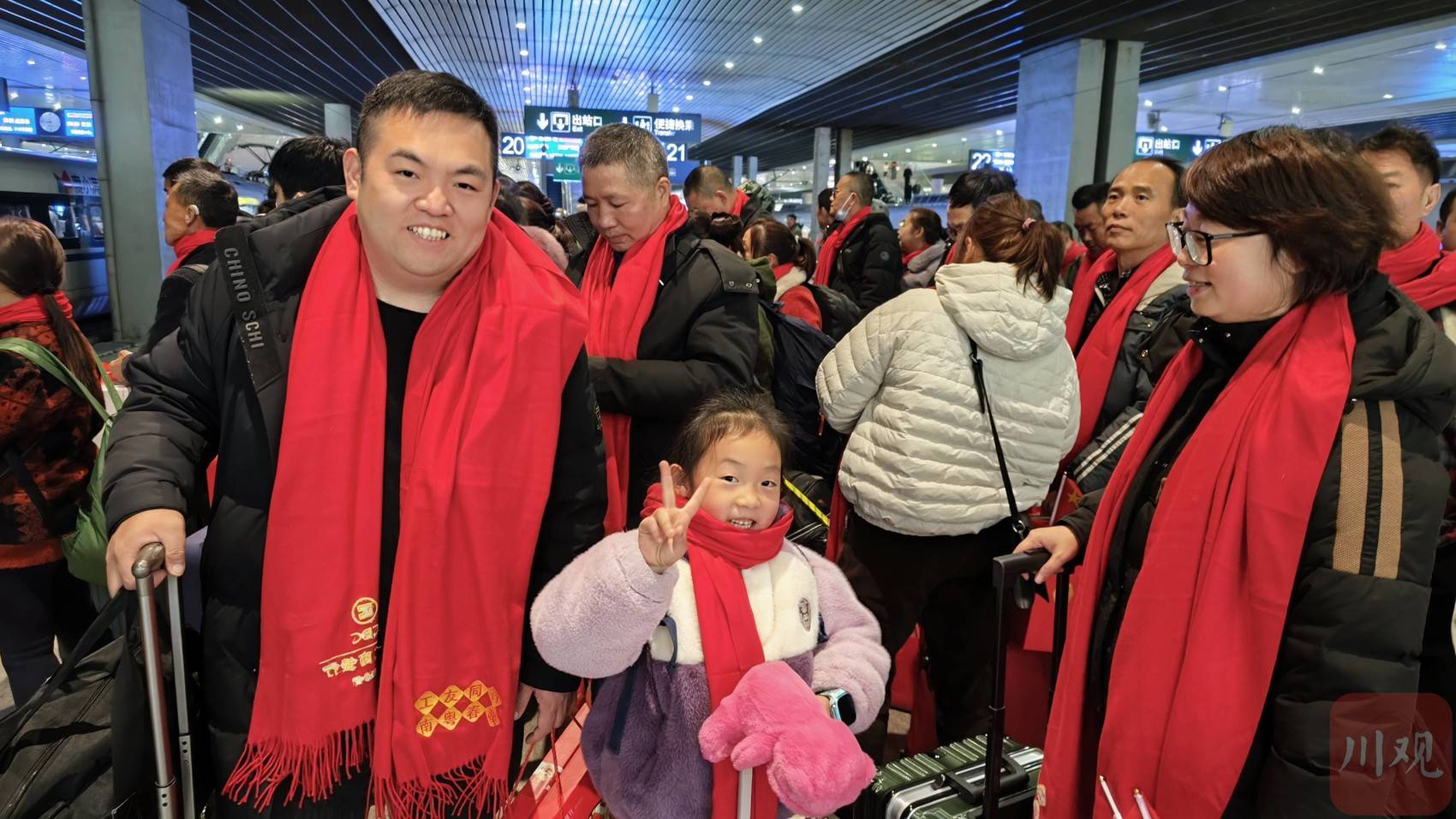 戴上紅圍脖,提起家鄉(xiāng)的臘肉香腸,穿過“綠色通道”……2月22日上午,來自成都邛崍市的吳小亞夫婦帶著8歲的兒子,在成都東站坐上了從綿陽站駛往廣州南站的D1805次列車,開啟新一年的奮斗打拼。