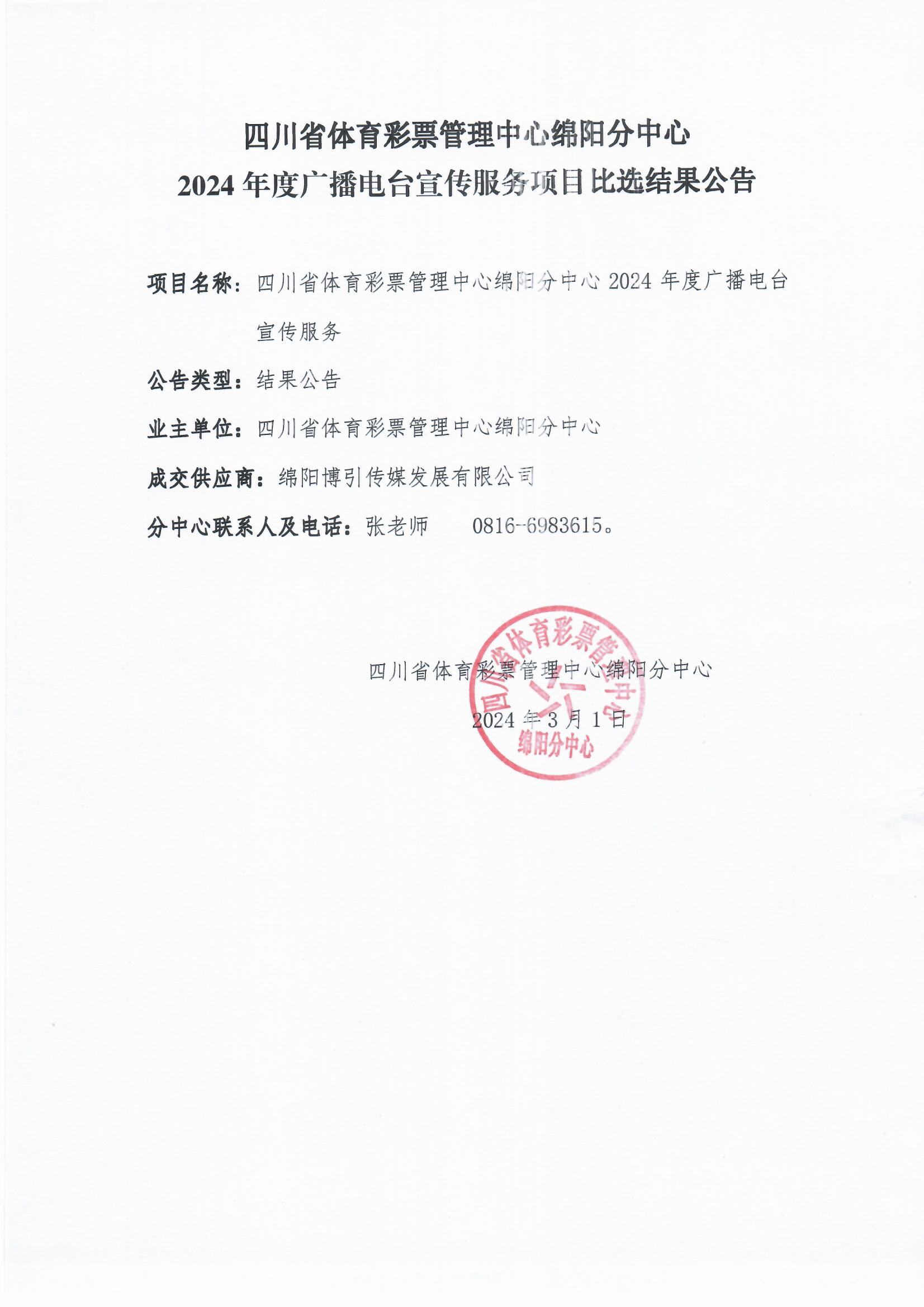 四川省體育彩票管理中心綿陽分中心2024年度廣播電臺宣傳服務(wù)項(xiàng)目比選結(jié)果公告