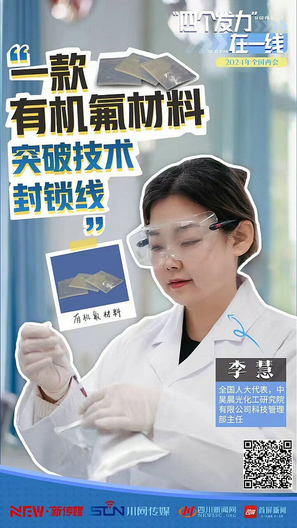 全國人大代表李慧就職的中昊晨光化工研究院有限公司,是國內(nèi)最早從事化工新材料研制生產(chǎn)的骨干企業(yè)之一。他們,是如何讓“有機(jī)氟”這個(gè)上個(gè)世紀(jì)40年代就被發(fā)現(xiàn)的化工材料,搖身一變成了高端市場(chǎng)的“爆款”搶手貨的呢?