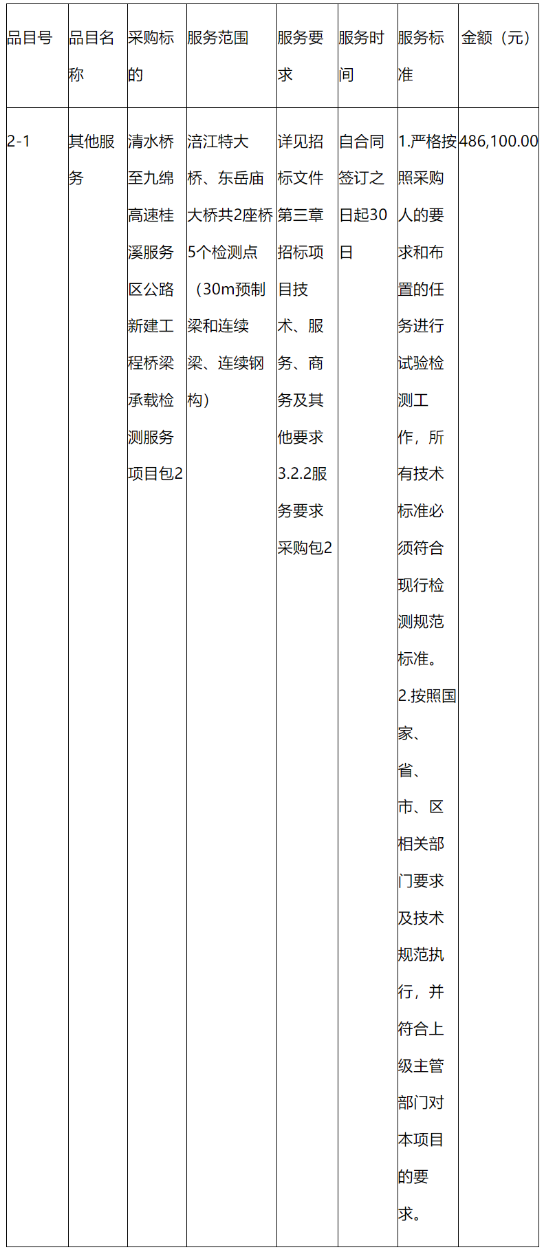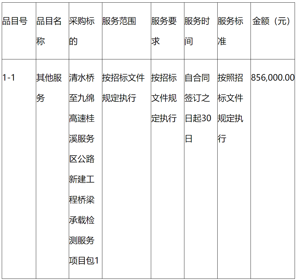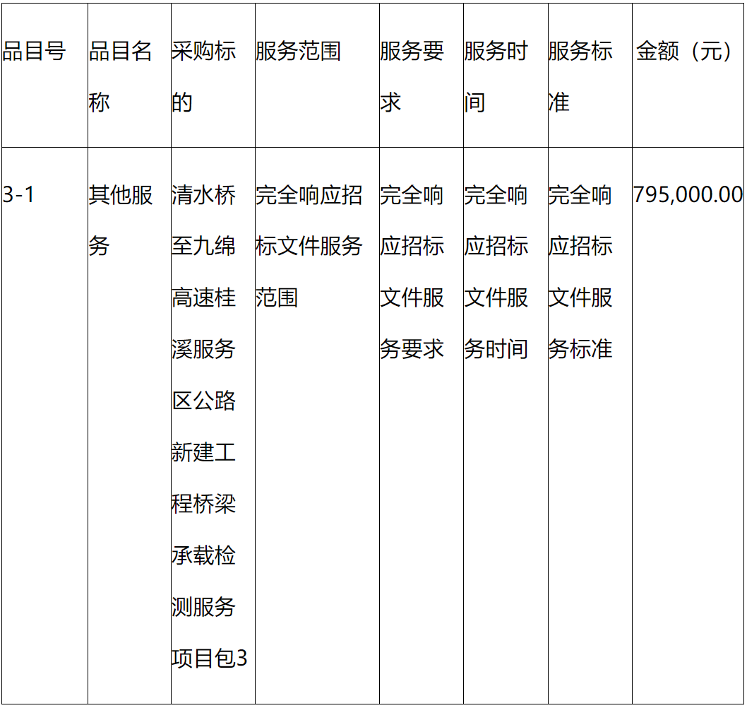 二、項目名稱:清水橋至九綿高速桂溪服務(wù)區(qū)公路新建工程橋梁承載檢測服務(wù)項目
