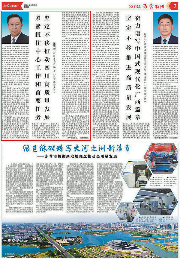 3月7日,《新華每日電訊》刊發(fā)四川省委書記、省人大常委會主任王曉暉署名文章《緊緊扭住中心工作和首要任務 堅定不移推動四川高質(zhì)量發(fā)展》。