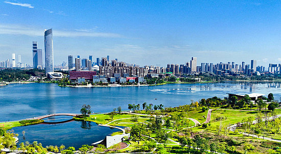2023年5月12日,環(huán)興隆湖畔,成都超算中心、成都科創(chuàng)生態(tài)島等錯落有致,一幅山水人城和諧相融的大美公園城市畫卷,正在這里徐徐鋪展。新華社發(fā)(四川省委宣傳部提供)。