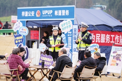 走近帳篷,“梓潼公安帳篷警務(wù)”“為民服務(wù)工作站”,標(biāo)明了這頂帳篷的歸屬。兩位民警正在帳篷前,向游客們講解生態(tài)環(huán)境保護(hù)、反詐防騙、交通安全等知識(shí);不遠(yuǎn)處,兩名民警在路口引導(dǎo)車輛有序進(jìn)入景區(qū);花海里,民警正拿起手機(jī),幫助幾位女游客拍攝美照……
