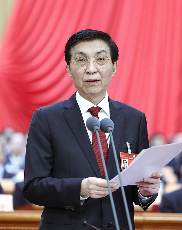 全國(guó)政協(xié)主席王滬寧主持閉幕會(huì)并講話。(新華社記者 鞠鵬 攝)