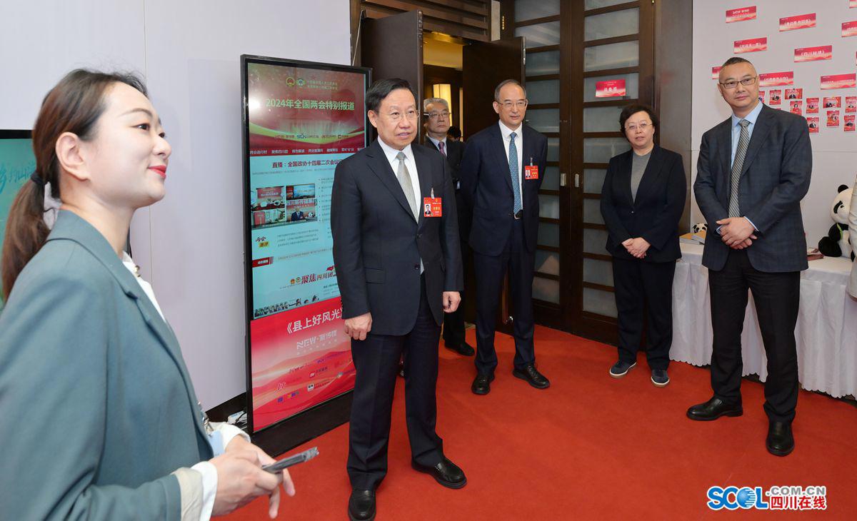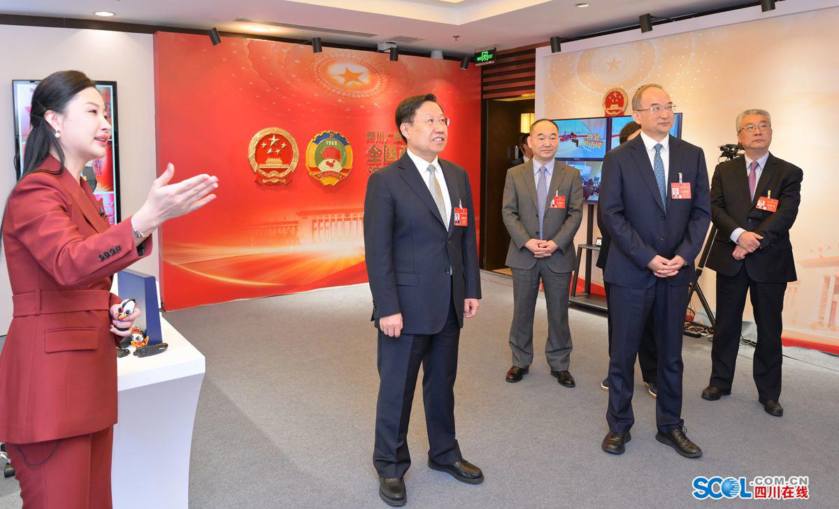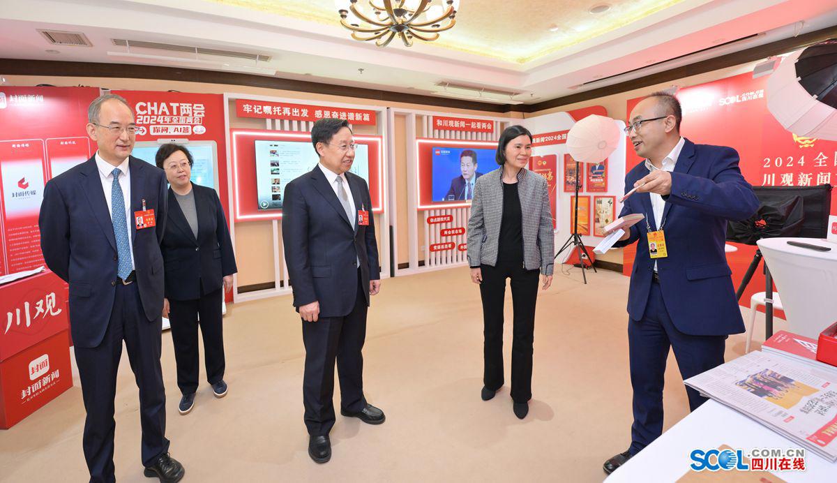 王曉暉、黃強(qiáng)先后來到四川日報(bào)報(bào)業(yè)集團(tuán)、四川廣播電視臺和四川新傳媒集團(tuán)設(shè)在駐地的演播廳,聽取各媒體宣傳報(bào)道總體情況介紹,詳細(xì)了解重大主題報(bào)道、重點(diǎn)選題策劃、人工智能技術(shù)賦能產(chǎn)品創(chuàng)新等情況,并饒有興致地察看全國兩會報(bào)道作品、特色文創(chuàng)產(chǎn)品展陳等。王曉暉對中央有關(guān)媒體和我省主要媒體全國兩會宣傳報(bào)道取得的階段性成效給予肯定,對大家的辛勤付出表示感謝。他說,今年全國兩會,是在新中國成立75周年、實(shí)現(xiàn)“十四五”規(guī)劃目標(biāo)任務(wù)的關(guān)鍵一年召開的重要會議,舉國關(guān)注、舉世矚目。連日來,大家聚焦大會主題,緊貼民生關(guān)切,充分發(fā)揮媒體融合優(yōu)勢,堅(jiān)持會內(nèi)會外緊密結(jié)合、北京四川時時聯(lián)動、前線后方密切配合,推出了一批有深度、有溫度、有力度的新聞報(bào)道,全面反映了大會盛況,展示了代表委員履職風(fēng)采,展現(xiàn)了全省上下朝著全面建設(shè)社會主義現(xiàn)代化四川闊步前行的奮進(jìn)姿態(tài)。希望大家發(fā)揚(yáng)連續(xù)作戰(zhàn)精神,再接再厲、善始善終做好各項(xiàng)報(bào)道工作,為全國兩會圓滿成功營造濃厚氛圍。