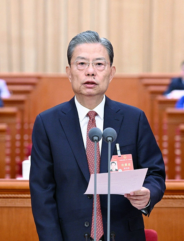 大會(huì)主席團(tuán)常務(wù)主席、執(zhí)行主席趙樂(lè)際主持閉幕會(huì)并講話。(新華社記者 李學(xué)仁 攝)??
