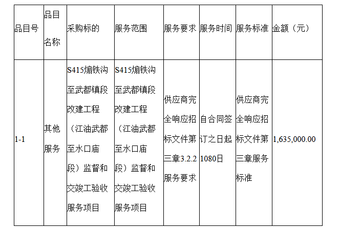二、項(xiàng)目名稱:S415煽鐵溝至武都鎮(zhèn)段改建工程(江油武都至水口廟段)監(jiān)督和交竣工驗(yàn)收服務(wù)項(xiàng)目
