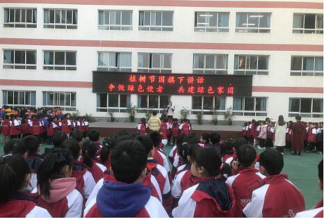 該校組織志愿者小隊為校園綠色貢獻力量。志愿者們走進每個教室、辦公室、功能室,走向操場,利用課余時間,為每一棵綠植除蟲、施肥、澆水、四周除草等。鼓勵學生利用周末,動員家長和孩子一起動手,在自家門前附近,親自動手實踐,種植一棵小樹。還有的學生把花苗,帶到班級,進行觀察、培育,班級成立“植物角”,美化班級。