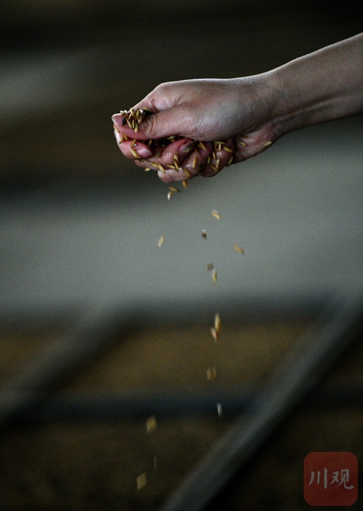 春分正是成都平原育秧的啟幕時節(jié)。正在清理苗床的王元威合伙人曾利說,育秧涵蓋種子防蟲處理、苗床整理、營養(yǎng)土搭配、澆水保濕、暗化催芽等工序,每個環(huán)節(jié)都關(guān)系到育秧成色。今年,馬均團隊計劃在永豐村中試水稻品種80個,數(shù)量為近年新高。其中,新品種60個、上一年度中試表現(xiàn)優(yōu)異品種19個,已推廣且表現(xiàn)良好的參照系品種1個。馬均說,過去三年,通過基地中試的新品種僅有6個。在國家啟動農(nóng)作物大面積單產(chǎn)提升行動的今年,新品種的評價越來越嚴格。只有在中試期通過出芽率、抗病性、高產(chǎn)性、宜機性等10多個指標測試,新品種才有可能在全省大范圍推廣。育秧正是79個品種今年“趕考”的第一關(guān)。