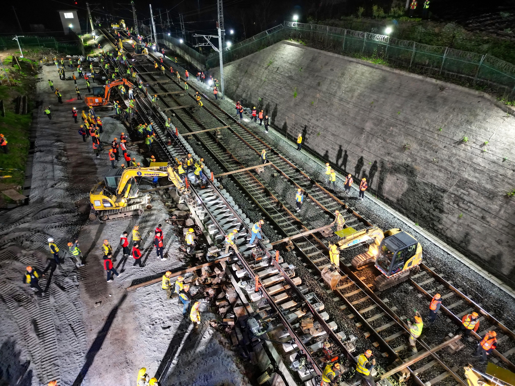 3月20日23點(diǎn)30分,按照既定方案,拆除線路、起道、撥道、搗固、鋼軌接頭焊接、機(jī)車壓道等工序有序推進(jìn),中鐵五局、鐵路成都局重慶工電段等多家單位的600余名施工人員,以及10余臺(tái)大型機(jī)械,進(jìn)行了近320分鐘的緊張施工,順利完成井口車站臨時(shí)增設(shè)1組道岔施工任務(wù)。