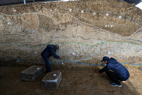 2023年12月4日,考古人員在熊家?guī)X水壩遺址現(xiàn)場進(jìn)行考古工作。新華社記者肖藝九 攝