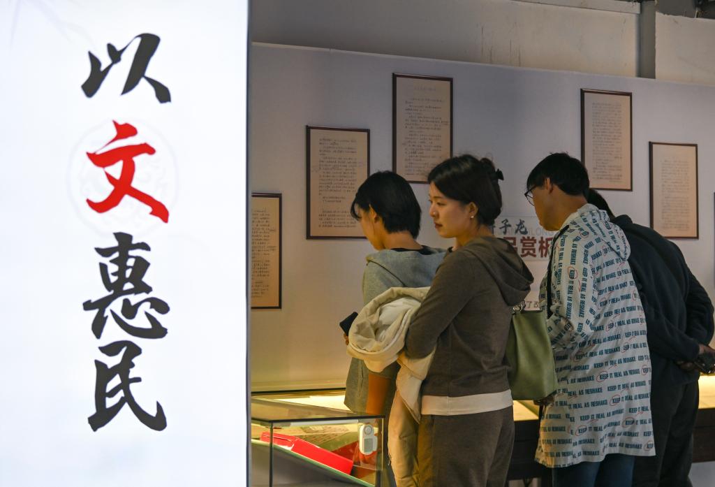 3月31日,在天津棉3創(chuàng)意街區(qū),市民在參觀文學(xué)藏品展。