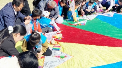 唱歌、背誦古詩、畫風(fēng)箏、做游戲……在活動(dòng)現(xiàn)場,孩子們在康復(fù)治療師與大學(xué)生志愿者的帶領(lǐng)下又唱又跳,還與家人一起畫風(fēng)箏。