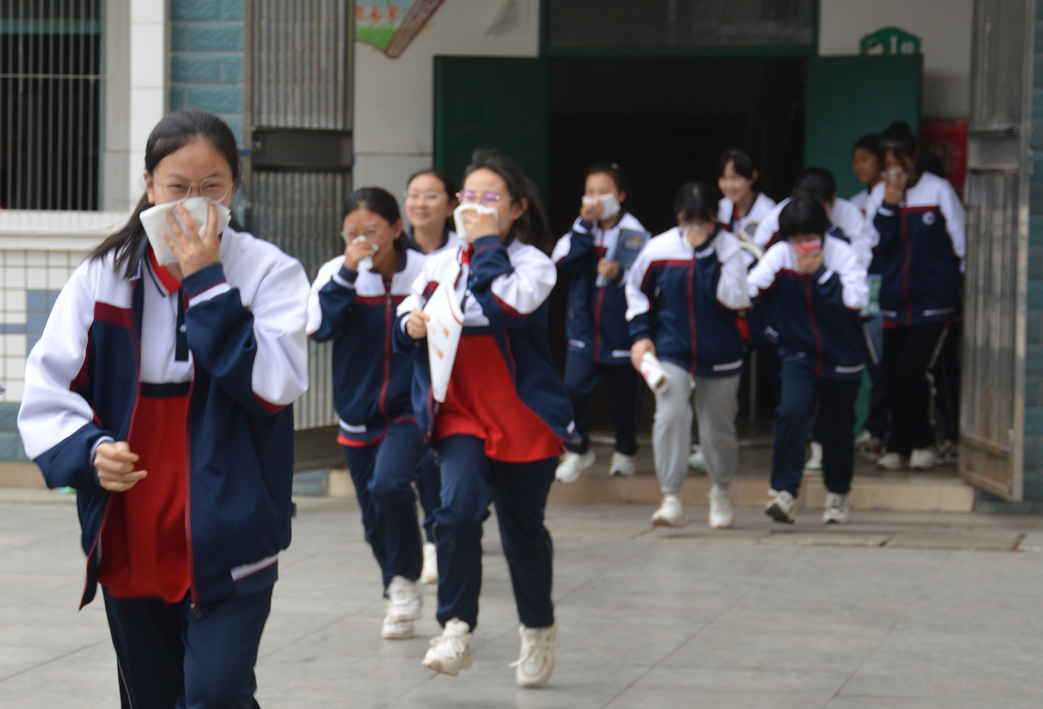 消防演練警報(bào)響起后,所有學(xué)生用毛巾或紙巾捂住口鼻,在教師指揮下有序撤離寢室。等所有學(xué)生集中到指定位置后,各班班主任再次清點(diǎn)報(bào)告人數(shù)。