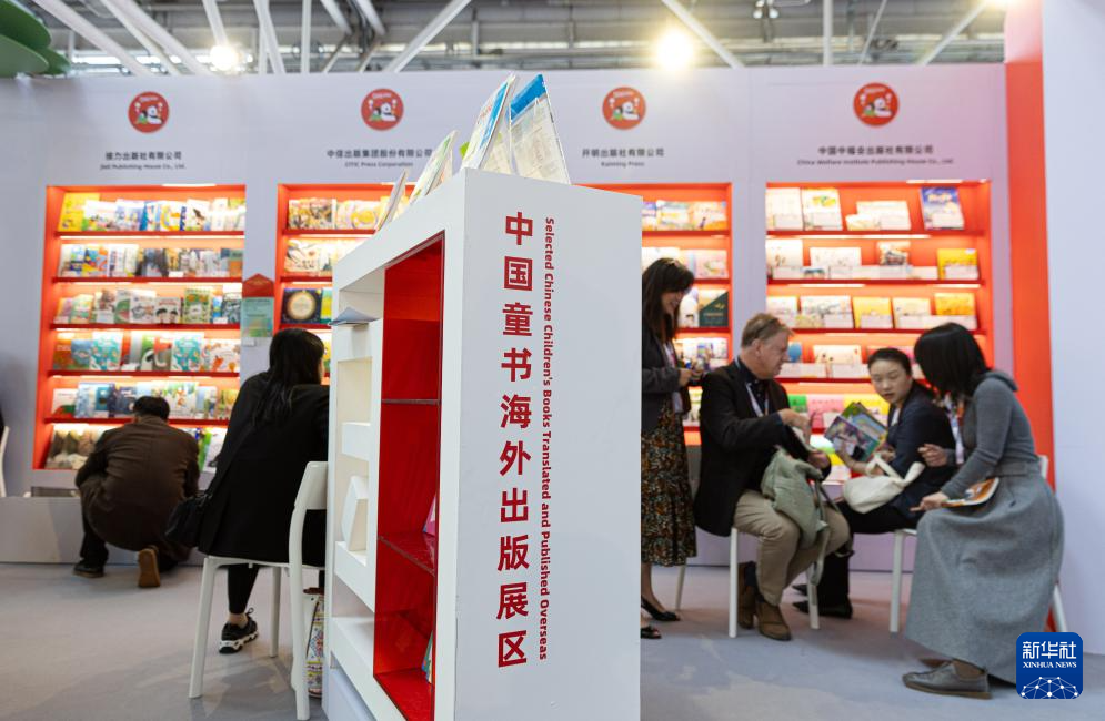 4月8日,人們在意大利博洛尼亞國際童書展中國展區(qū)參觀。