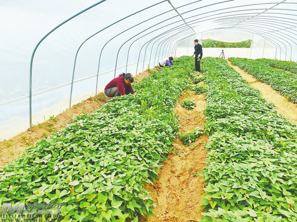 走進園區(qū),農(nóng)技人員正在田間地頭指導(dǎo)村民種植紅薯。“原本按照傳統(tǒng)種植模式,需要6月上、中旬才能種植的紅薯,由于選用新品種,并采用‘大棚+小拱棚+平膜’的三膜育苗方式進行早育苗,使得種植時間提前到4月初,紅薯由一年一收向一年兩收跨越。”市農(nóng)科院薯類研究所所長丁凡介紹道。