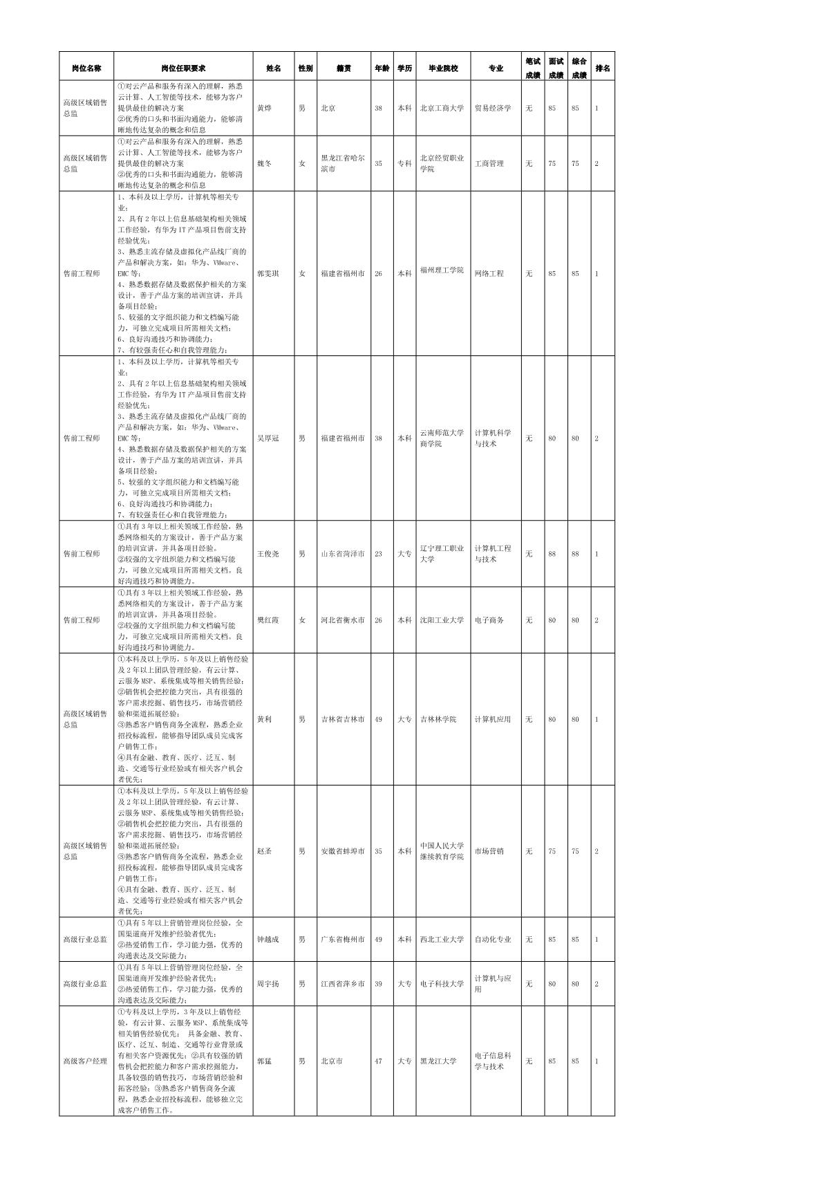 根據(jù)四川長虹佳華信息產(chǎn)品有限責任公司發(fā)布的招聘公告及招聘相關規(guī)定,經(jīng)筆試、面試等程序,現(xiàn)將筆試(面試)成績予以公示。