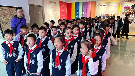 上午9點,城郊小學(xué)的學(xué)生們整齊列隊,走進(jìn)了四川幼兒師范高等??茖W(xué)校美術(shù)傳承創(chuàng)新科普基地的白馬展廳。一進(jìn)到廳內(nèi),學(xué)生們立刻被四周所展示的精美畫作品和藝術(shù)品所吸引,當(dāng)?shù)弥约菏强破栈爻闪⒁詠淼牡谝慌≡L客時,學(xué)生們感到無比榮幸和激動。