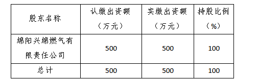 綿陽(yáng)能投置業(yè)有限公司為國(guó)有全資公司。其中,綿陽(yáng)興綿燃?xì)庥邢挢?zé)任公司(以下簡(jiǎn)稱“興綿燃?xì)夤?rdquo;)持有的國(guó)有股權(quán)比例占公司總股本的100%,具體股權(quán)結(jié)構(gòu)如下表所示: