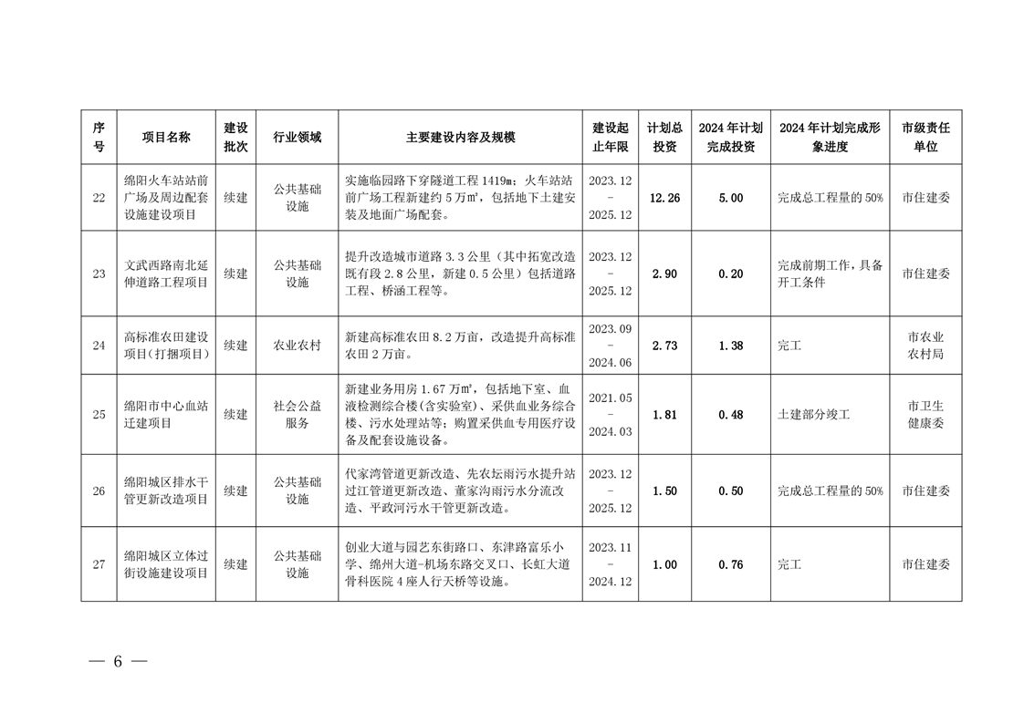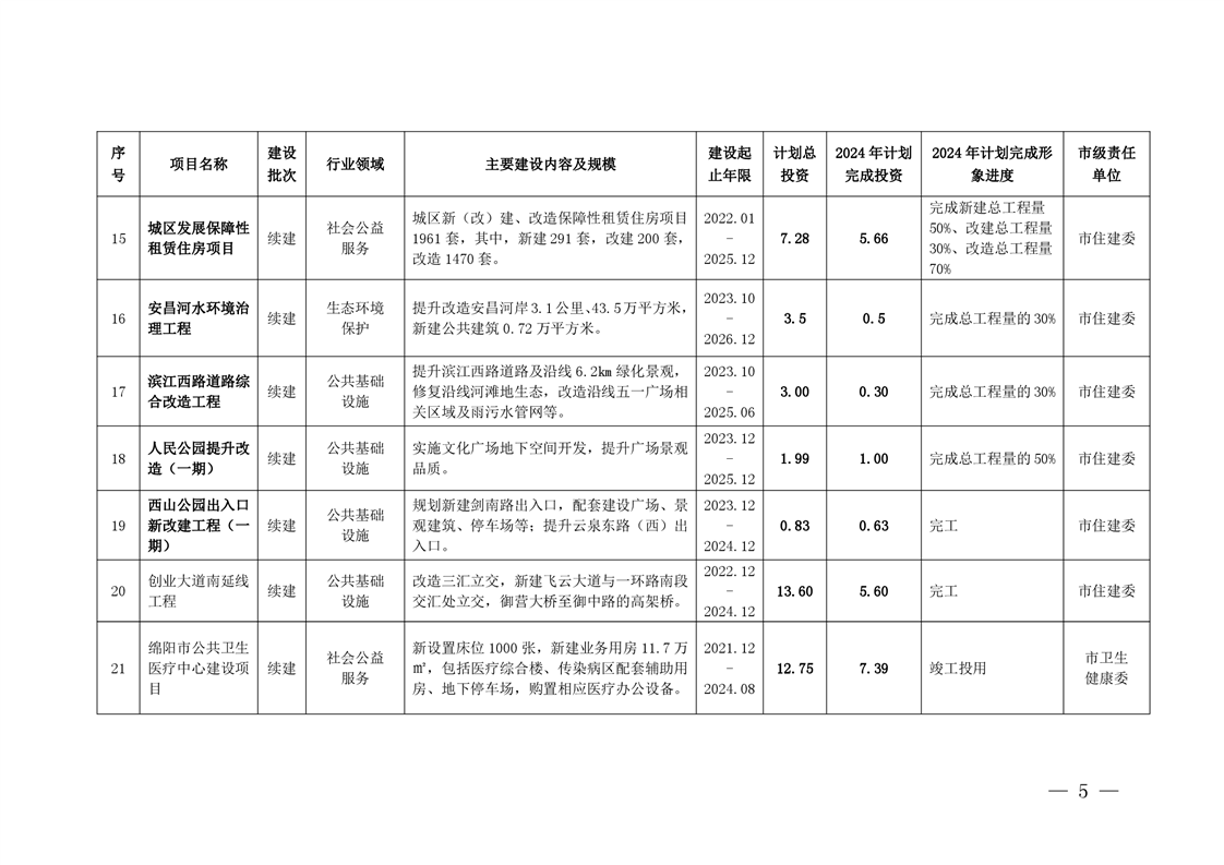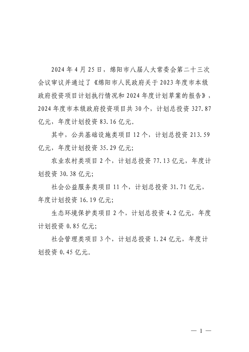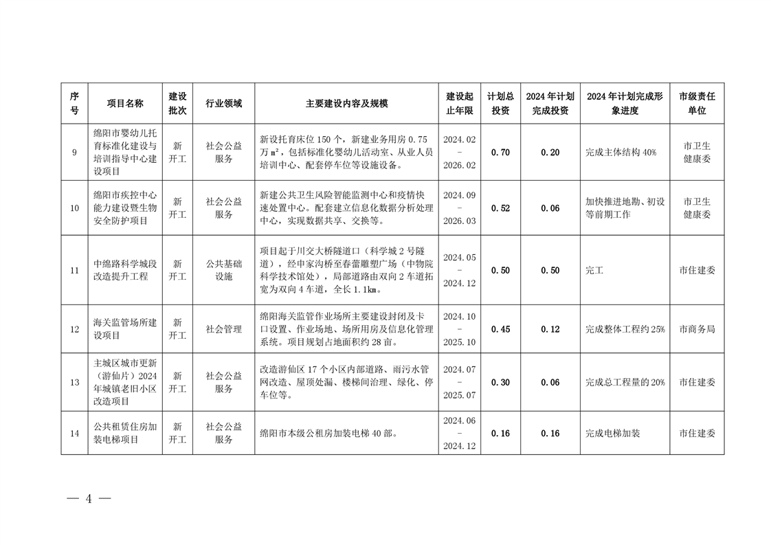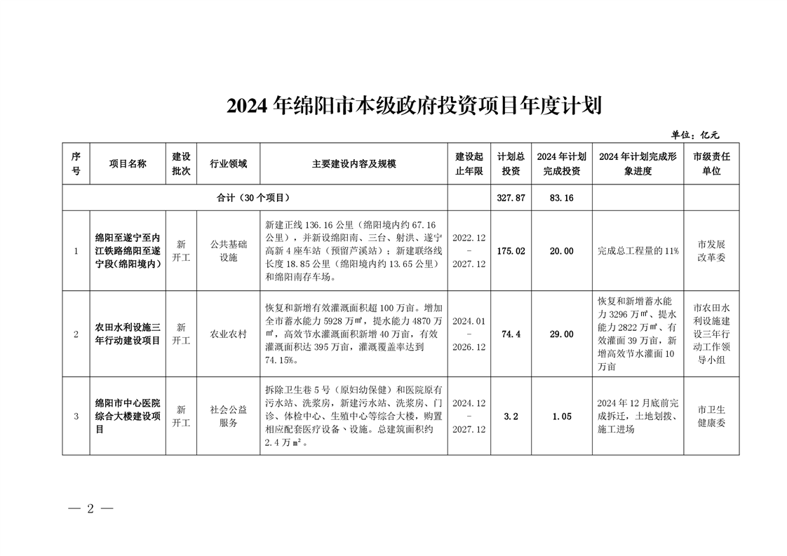 2024年綿陽(yáng)市本級(jí)政府投資項(xiàng)目年度計(jì)劃