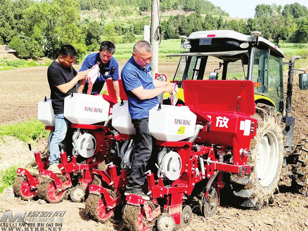農(nóng)機手指導村民機械化播種