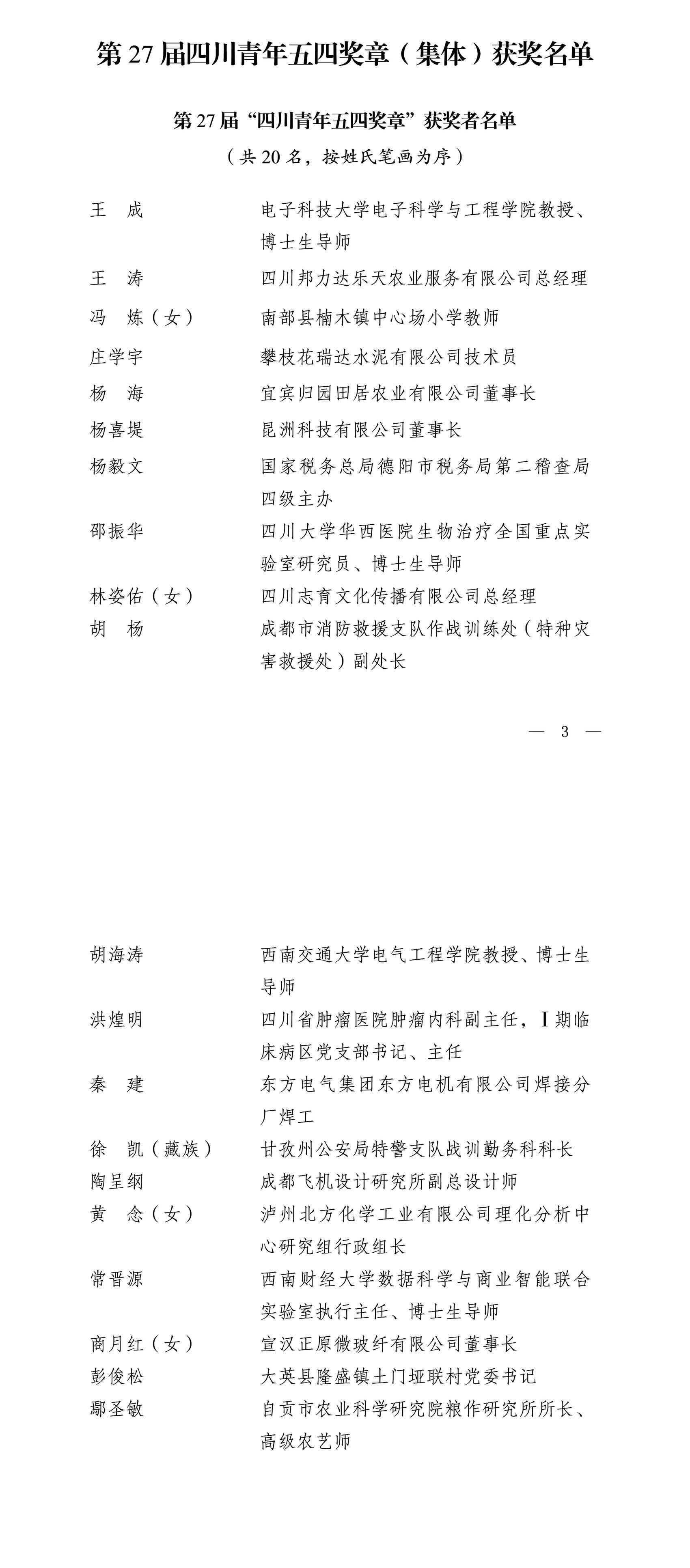 表彰名單如下: