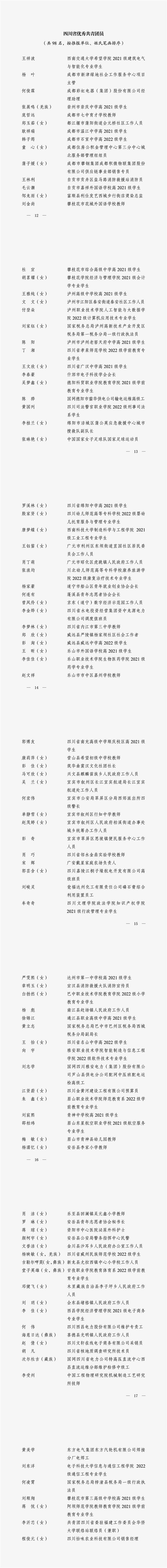 摘要:4月29日,記者從共青團(tuán)四川省委獲悉,五四青年節(jié)即將到來(lái)之際,為表彰先進(jìn)、樹立典型,共青團(tuán)四川省委、四川省人力資源和社會(huì)保障廳決定,授予四川省綿陽(yáng)南山中學(xué)團(tuán)委等團(tuán)組織四川省五四紅旗團(tuán)委稱號(hào),授予北川羌族自治縣曲山鎮(zhèn)石椅村團(tuán)支部等團(tuán)組織四川省五四紅旗團(tuán)支部稱號(hào),授予綿陽(yáng)市涪城區(qū)蒲公英應(yīng)急救援中心城市搜救隊(duì)副隊(duì)長(zhǎng)李桂蘭等四川省優(yōu)秀共青團(tuán)員稱號(hào),授予綿陽(yáng)師范學(xué)院團(tuán)委書記馬嘯等四川省優(yōu)秀共青團(tuán)干部稱號(hào)。