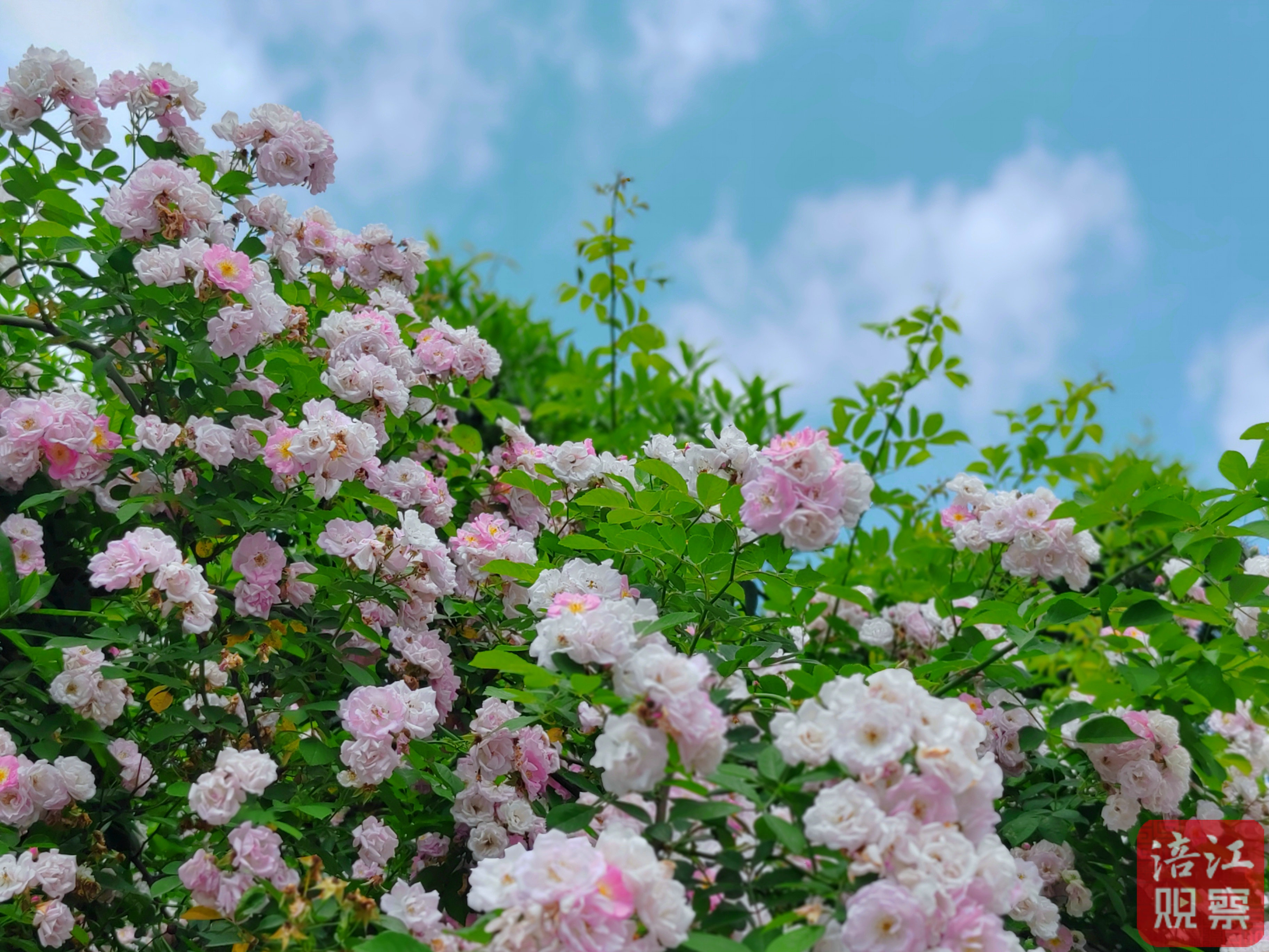 在江油市大康鎮(zhèn),主干道兩旁的薔薇藤蔓相互牽連,綴滿了雪白、粉紅的花朵,形成長達數(shù)百米的繽紛“花廊”,引得游客紛紛駐足欣賞、打卡拍照。